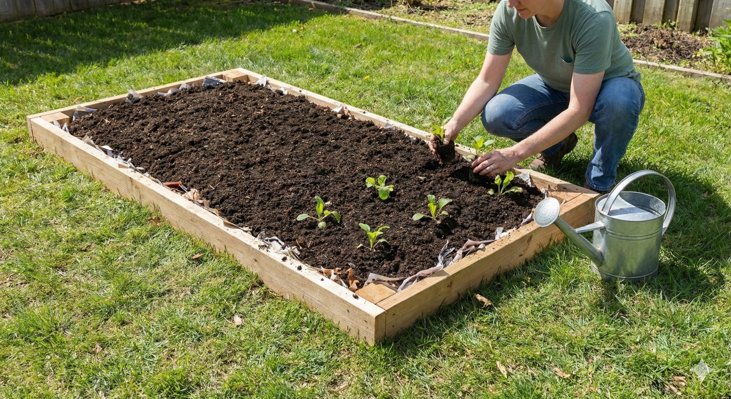 Watering: Water the garden thoroughly after planting. Over time, the need for watering will decrease as the layers retain moisture.