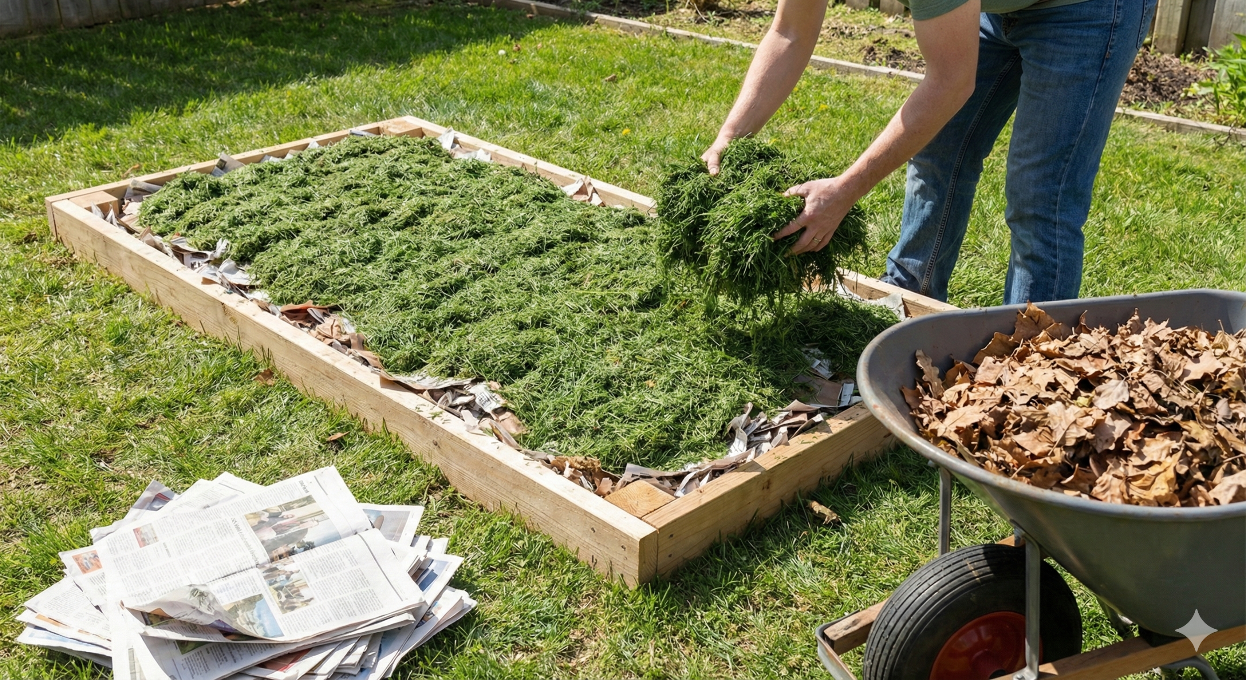 Build Up Layers: Continue adding layers until the bed is at least 18-24 inches high. The layers will settle and decompose over time.