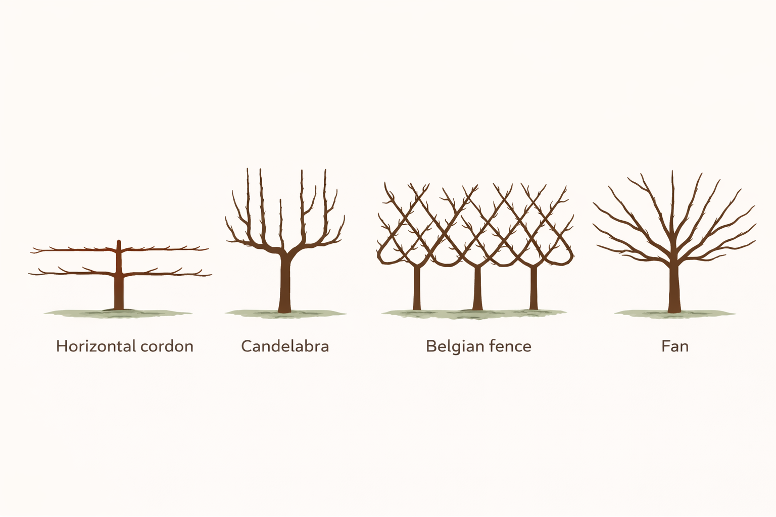 | Fan | Stone fruits, figs | 2 ft deep × 8 to 12 ft wide | Moderate |